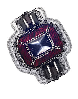 Deco Cuff featuring red silk and chain-embroidered tulle covered gems