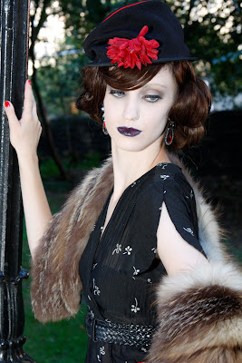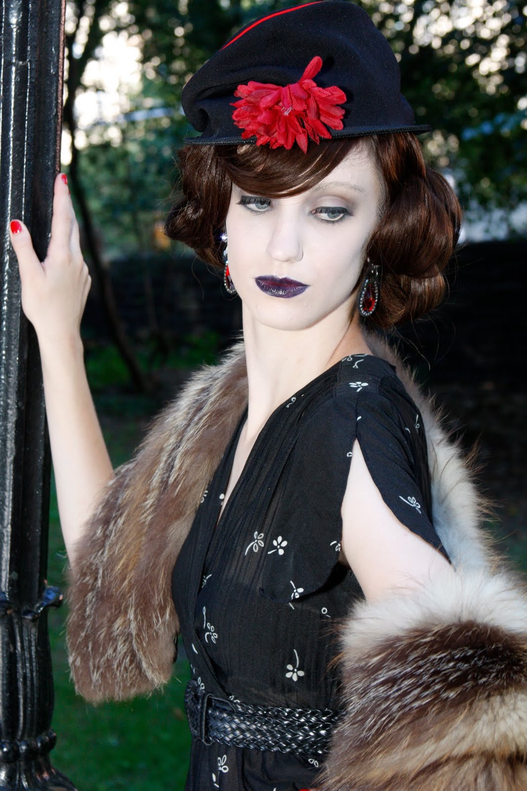 The last Monday in August, my friend Mondo, who is an amazing make-up artist, and his friend Irving (who does hair) wanted to put together a photo shoot using some of my jewelry and vintage clothing. It was about 95 degrees that day, and we were all out in the park, dressed for fall weather, futilely trying to stay cool. Despite the weather, I must say the shots came out pretty great!