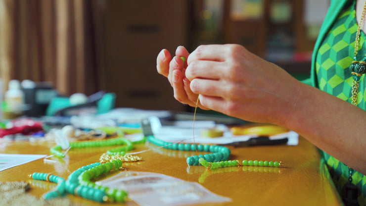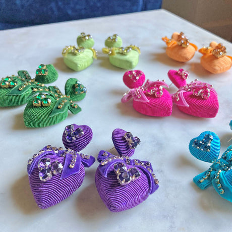 Earrings made of 3-cut beaded waterfall tassels. Earrings measure about 2-1/2" long and 1-1/2” wide with sterling silver posts. Tassels connected to round post backed in leather.