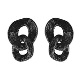 Small curb chain drop earrings wrapped in metallic cords. Earrings measure about 1-1/2" long x 7/8" wide, have stainless steel posts, and are very lightweight.
