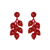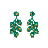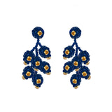 Mini beaded flower cluster drop earrings made of glass seed beads and metal faceted beads. Posts are sterling silver backed in leather. Earrings measure about 1-3/8" long x 7/8" wide. Extremely lightweight.