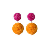 One-of-a-kind beaded gumball earrings. Earrings are made of 3-cut bead-wrapped round beads. Earrings measure about 1-3/4" long x 7/8" wide, have sterling silver posts backed in leather, and are lightweight. Colorful, unique, and only one pair of each color made!